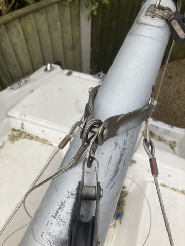 forestay has been replaced, I have also up graded to a 4mm as there is room in plastimo for this to fit. Also taking Chris's advice from minimac I have made an inch shorter to tighten forestay. All raised and looking good, I will keep an eye on it